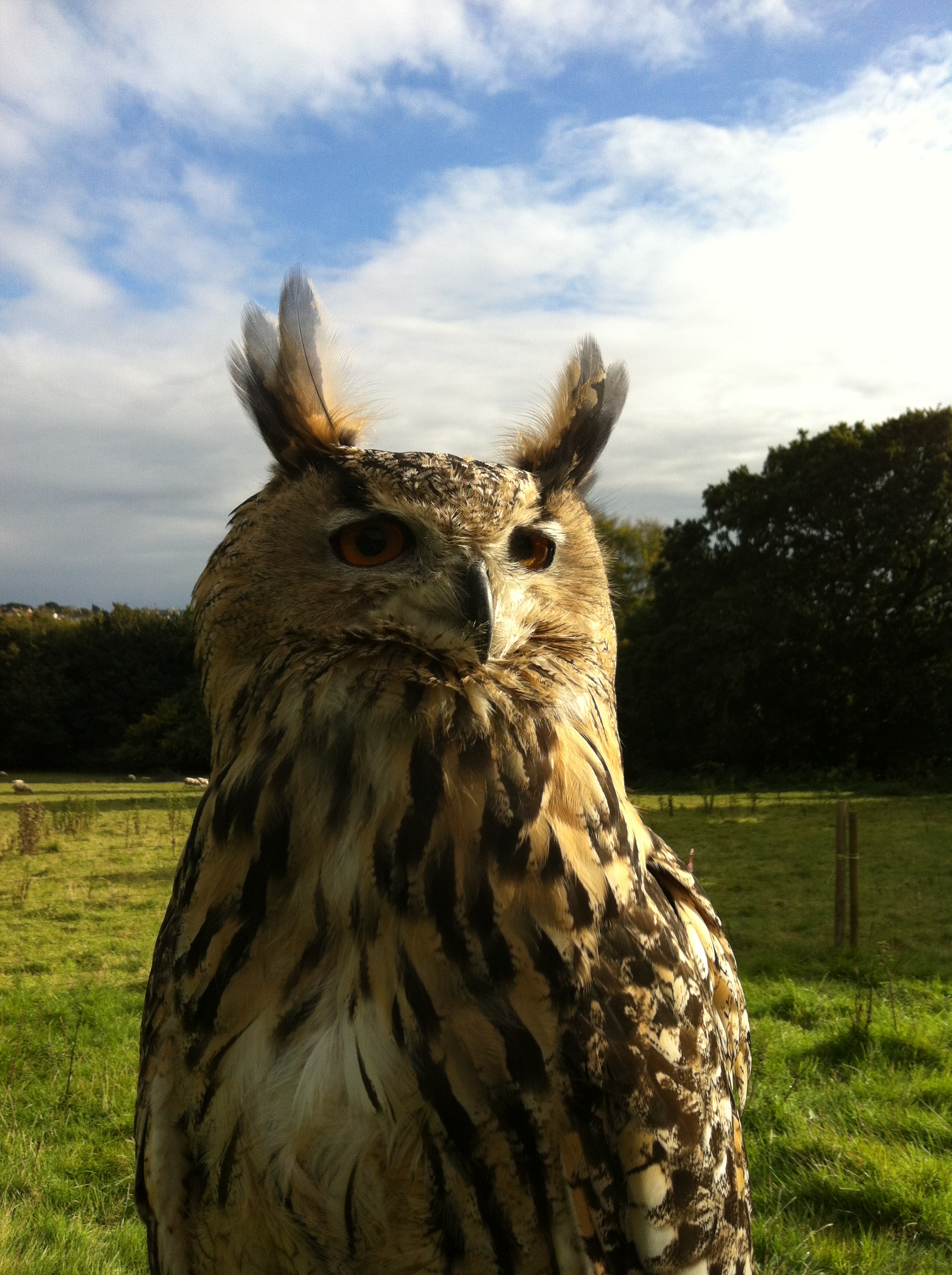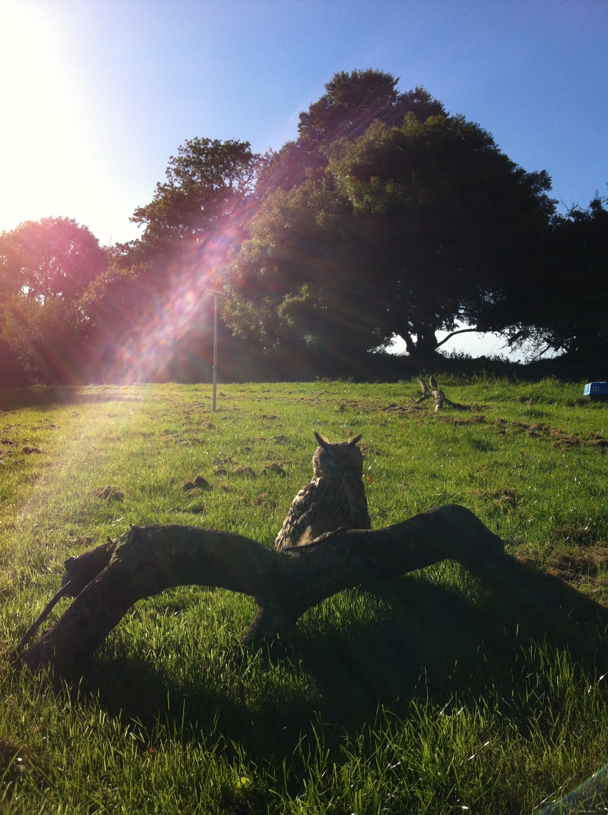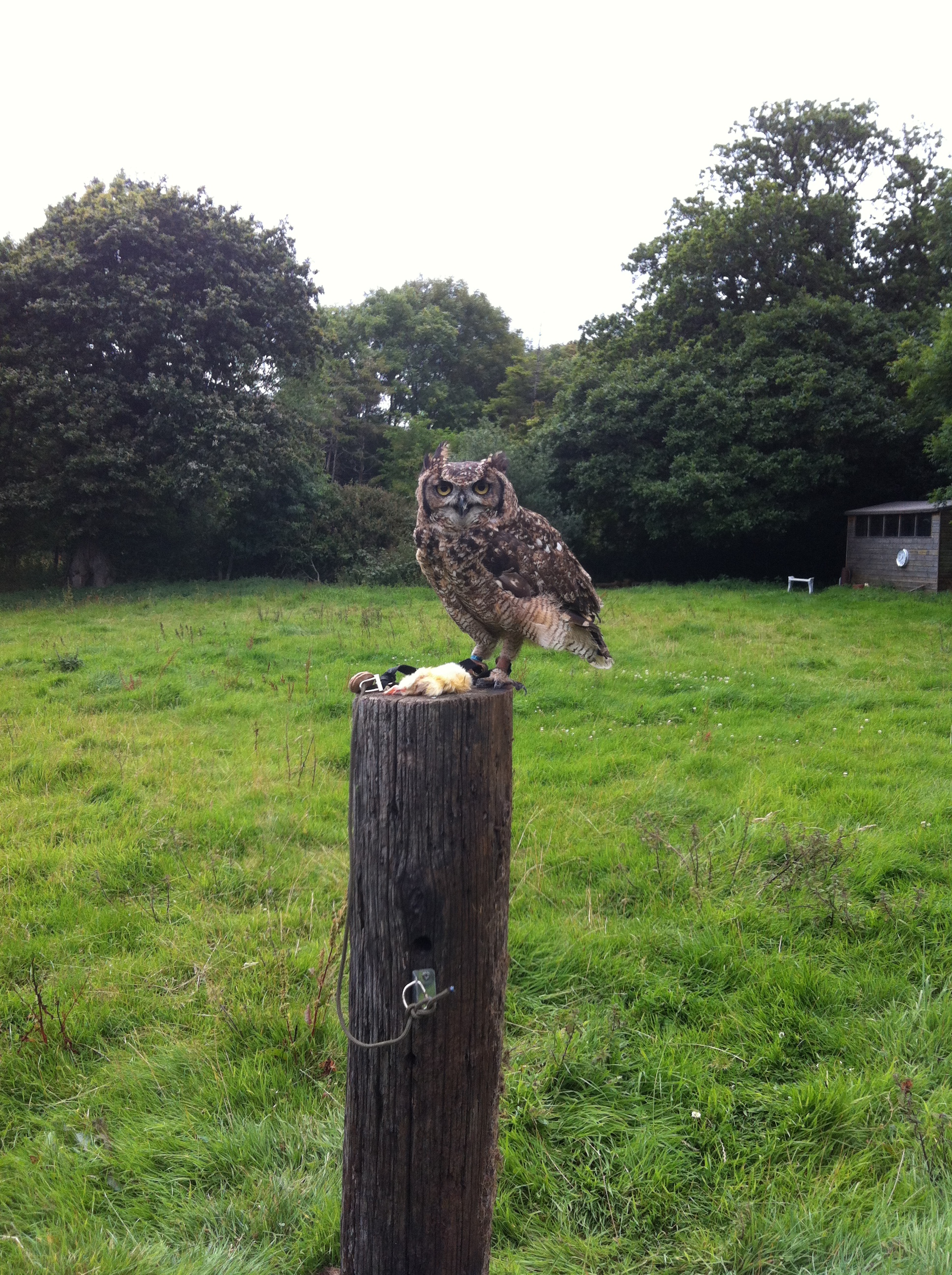 Mid afternoon I usually head to the field to see Victor and BB. I am working on building their confidences with being handled, or manned to use the correct term. They were both hand reared but had not been handled much at all before they came to me this year. As they are now both about 5 years old this may take a lot of time and patience on my part. However as Eurasian Eagle Owls can live up to 60 years I figure it is worth it.