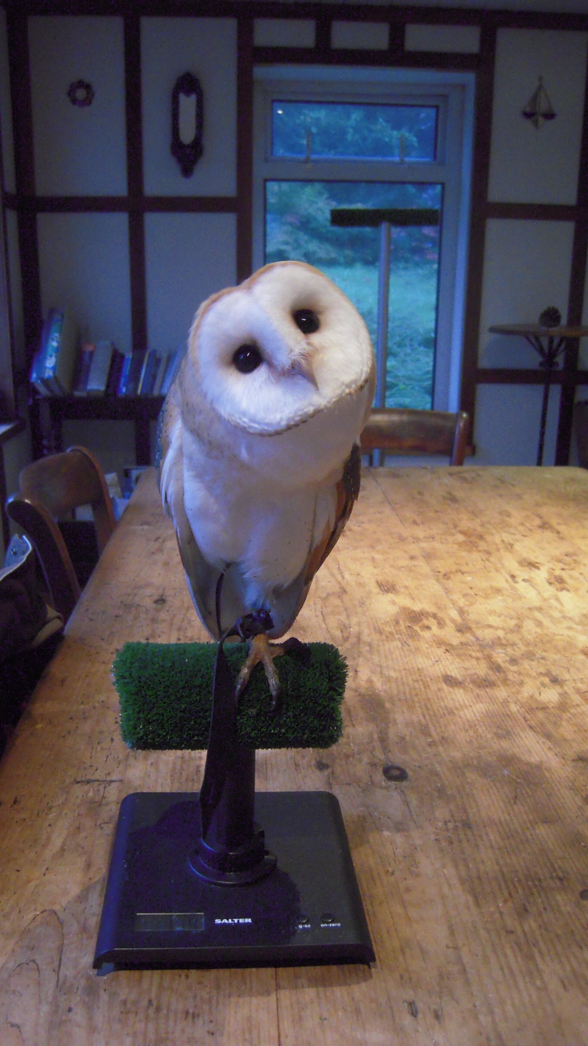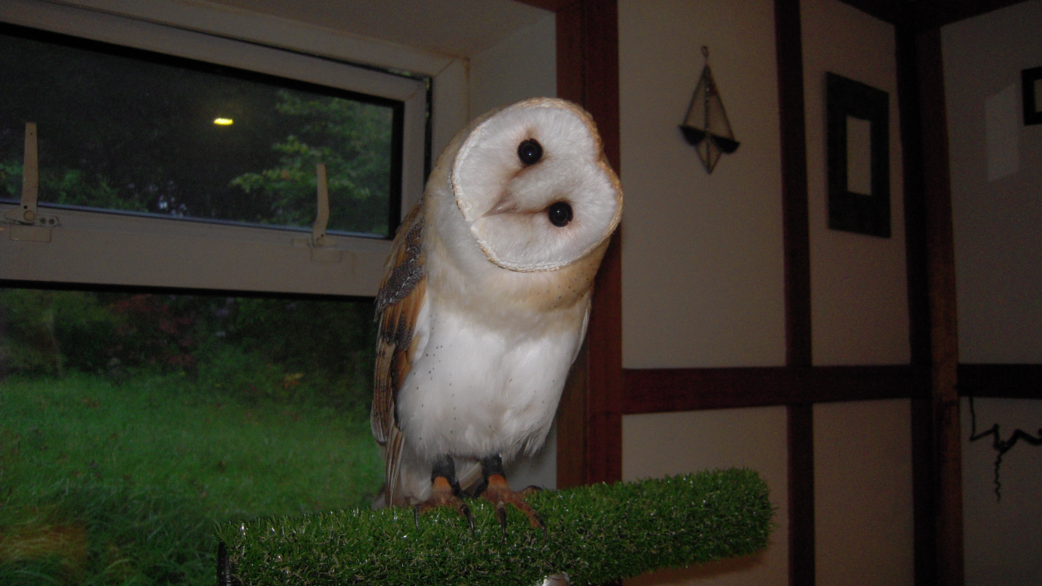 Whisper is often still awake in the morning, though not always. I never knew that I would be able to tell if a Barn Owl is tired just by looking at one, but Whisper actually squints if she is up too early or stayed up too late. You would think that she would go into her box, but no, she is often sitting on a perch on one foot squinting at the morning light! If anyone goes near the aviary she then dashes into her box to hide – I wonder if she is thinking ‘No, I do not want to come out and play, it is bedtime’. Just like a teenager – she hates mornings!