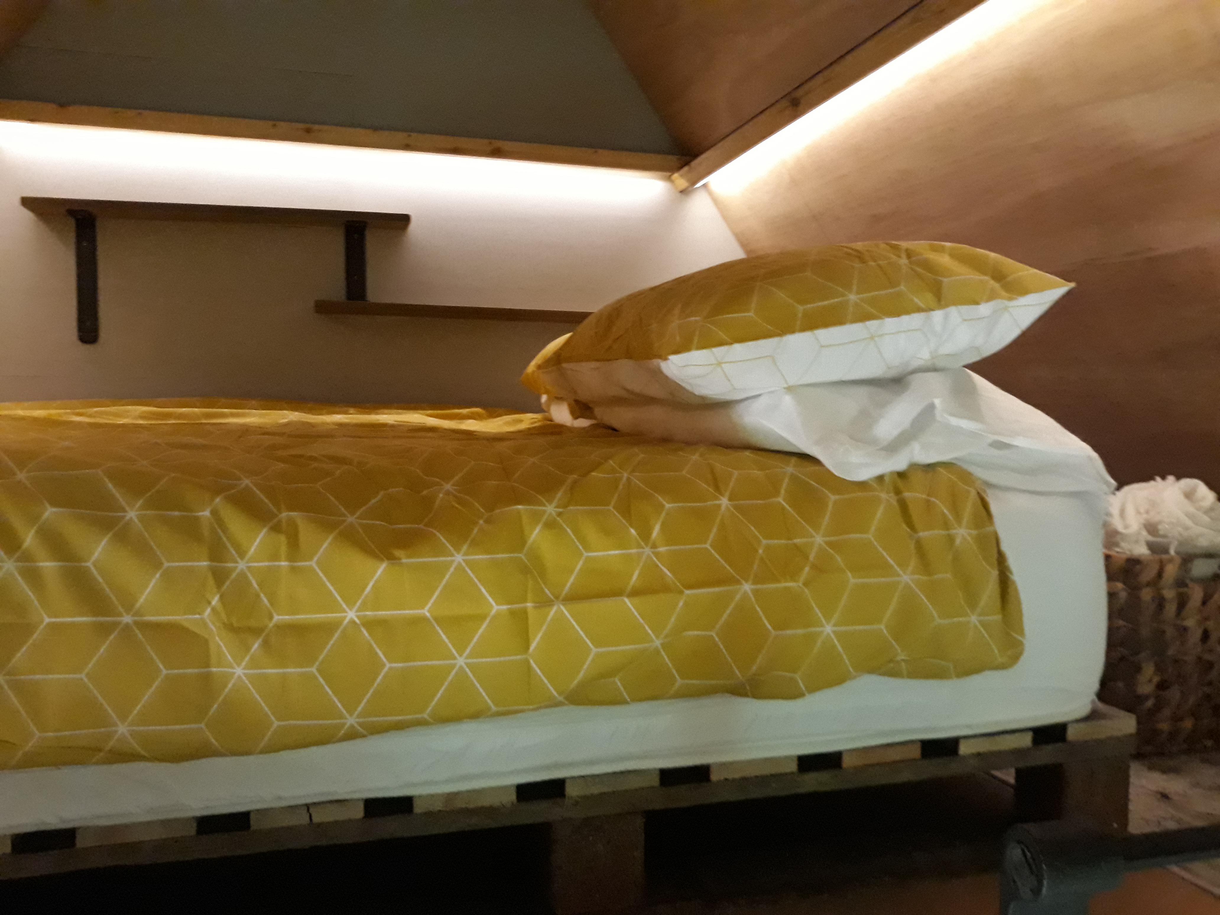 In the Owl Nest: A kettle, coffee filter machine, toaster with toasty bags, and a fridge with ice ready for you. Lavassa roast coffee, teas, fruit juice, milk type of your choosing, sweet treats and eco friendly plant based toiletries by Trevarno Organics are also provided. In the mezzanine there is a kingsize hybrid mattress bed, comfy duvet, pillows and extra blankets for chilly nights. Free wifi.